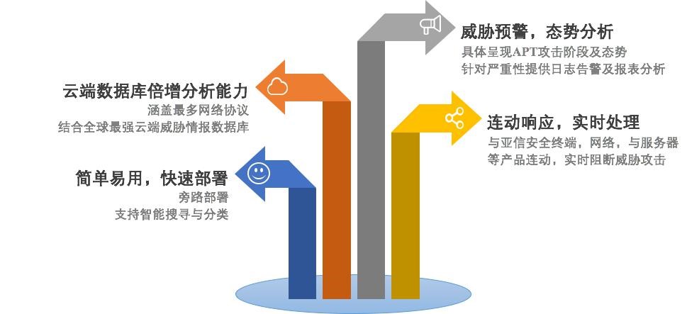 TDA 能針對(duì) APT 攻擊提供高級(jí)網(wǎng)絡(luò)防護(hù),監(jiān)控所有連接端口以及 100 多種通訊協(xié)議,分析所有進(jìn)出的網(wǎng)絡(luò)數(shù)據(jù)流量。通過其特殊的偵測(cè)引擎與定制化沙盒技術(shù),能發(fā)現(xiàn)并分析攻擊者使用的惡意文檔,惡意軟件、惡意網(wǎng)頁,幕后操縱(C&C)惡意通訊,以及隱匿的攻擊活動(dòng),提供調(diào)查情報(bào)讓調(diào)查人員快速響應(yīng)并阻止攻擊。再加上亞信安全最早投產(chǎn)的全球 APT 情報(bào)數(shù)據(jù)庫及全球最強(qiáng)的云安全智能防護(hù)網(wǎng)絡(luò)(Smart Protection Network),可以讓 TDA 在偵測(cè)大量的變種威脅以及利用零日漏洞的未知攻擊上的偵測(cè)更具優(yōu)勢(shì)。